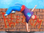 2012Vol bewondering kijk ik naar de jonge mensen die zich al buitelend door een stad heen bewegen. Wat een lichaamsbeheersing. Moet een gevoel van grote vrijheid geven.